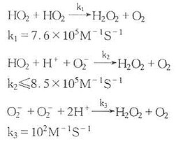 k=2.37×109M-1S-1,O2-也可自身进行歧化反应,反应速度相当慢: