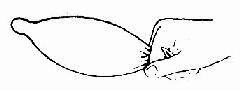 一、避孕套(阴茎套)阴茎套系由优质乳胶制成,有大、中、小(直径35、33、31mm)三号,作用是使射精时精液排在套内,阻止其进入阴道,达到避孕目的。使用前后应充气或灌水检查其有无破损(图180、181)。用时先将阴茎套前端小囊捏扁,以备贮放精液,然后套在阴茎上。射精后,在阴茎未全软缩前,捏住套口,连同阴茎一起抽出,以防精液外流或阴茎套滑脱在阴道内。避孕可靠性在95%以上,如条件许可,每次使用新套更为可靠。
