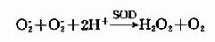 超氧离子在超氧化物歧化酶(superoxidedismutase,SOD)催化下生成H2O2与O2: