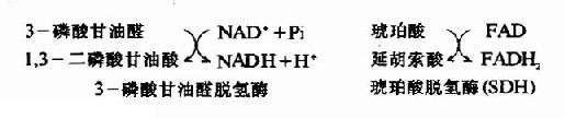 3.不需氧脱氢酶类(anaerobic dehydrogenases) 这是人体内主要的脱氢酶类,其直接受氢体不是O2,而只能是某些辅酶(NAD+、NADP+)或辅基(FAD、FMN),辅酶或辅基还原后又将氢原子传递至线粒体氧化呼吸链,最后将电子传给氧生成水,在此过程中释放出来的能量使ADP磷酸化生成ATP,如3磷酸甘油醛脱氢酶、琥珀酸脱氢酶、细胞色素体系等。