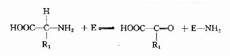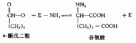 (2)NH2转给另一种酮酸,(如α酮戊二酸)生成氨基酸,并释放出酶分子: