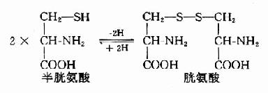 图7-16 肌酸的代谢 CPK由两种亚基组成;即M亚基(肌型)与B亚基(脑型)。有三种同工酶;即MM型(在骨骼肌中)BB型在脑中)和MB型(在心肌中)。心肌梗塞时,血中MB型CPK活性增高,可作辅助诊断的指标之一。 肌酸和磷酸肌酸代谢的终产物是肌酸酐(creatinine)简称肌酐。正常成人,每日尿中肌酐量恒定。肾功能障碍时,检查血或尿中肌酐含量以帮助诊断。 (二)半胱氨酸和胱氨酸的代谢 1.半胱氨酸和胱氨酸的互变 半胱氨酸含巯基(-SH),胱氨酸含有二硫键(S-S-),二者可通过氧化还原而互变。胱氨酸不参与蛋白质的合成,蛋白质中的胱氨酸由半胱氨酸残基氧化脱氢而来。在蛋白质分子中两个半胱氨酸残基间所形成的二硫键对维持蛋白质分子构象起重要作用。而蛋白分子中半胱氨酸的巯基是许多蛋白质或酶的活性基团。
