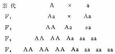 (4)自交或称互交(Intercrosses):亲代为两个杂合子交配:如a/A×a/A。