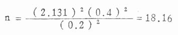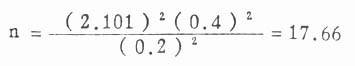 当n=19(略大于18.16),ν=19-1=18,t0.05=2.101