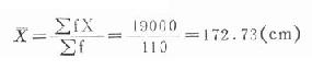 (二)加权法当观察值个数较多时,可先将各观察值分组归纳成频数表,用加权法求均数。其计算步骤如例18.2。 例18.2 某地1993年随机测量了该地110名20岁健康男大学生的身高(cm),资料如下,试计算其均数。