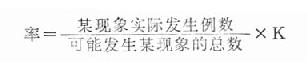 二、率表示在一定条件下,某种现象实际发生的例数与可能发生这种现象的总数之比,用以说明某种现象发生的频率,故又称为频率指标,以100,1000,10000或100000为比例基数(K)均可,原则上以结果至少保留一位整数为宜,其计算公式为: